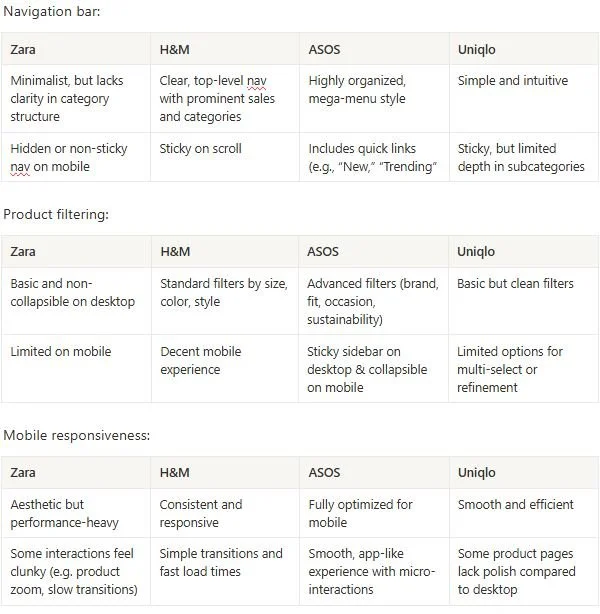 There’s opportunity to enhance the mobile experience. Given Zara’s mobile-heavy user base (inferred from brand trends), and the reported checkout/navigation issues, mobile usability and speed may be contributing factors—calling for focused testing.